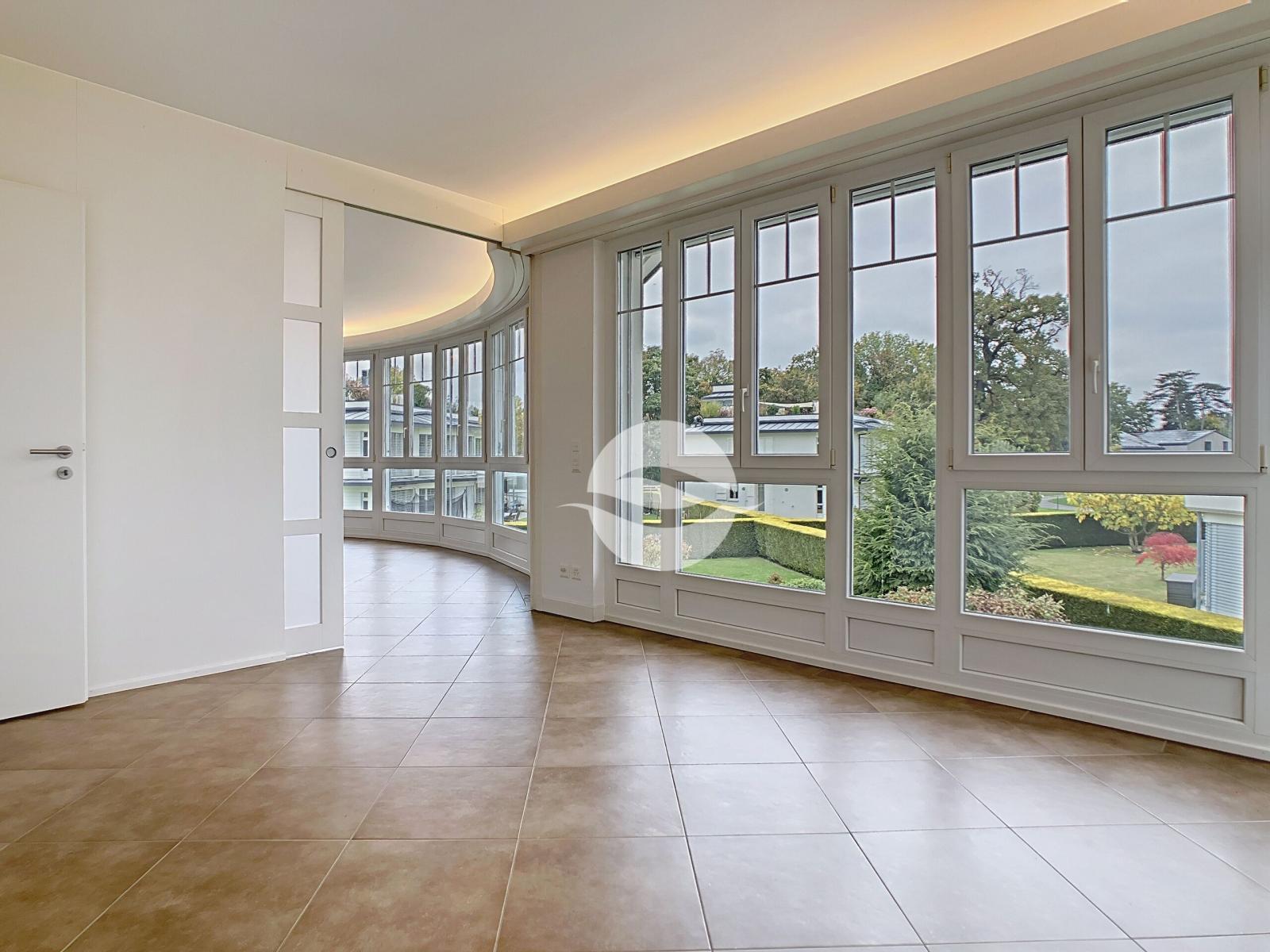 Situé au milieu d'un écrin de verdure, dans un quartier privilégié, ce magnifique appartement localisé au 1er étage possède tout le confort moderne : finitions soignées, équipements de très haute qualité tels que des électroménagers V-ZUG, une douche/hammam.